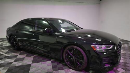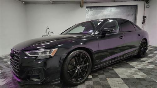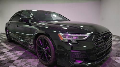 CARFAX One-Owner. 2023 Audi A8 L 55 quattro Black w/Valetta Leather Seat Upholstery or Valcona Leather Seat Upholstery, 20" 10-Parallel-Spoke-Design Wheels, Alu-Optic Buttons, AM/FM radio: SiriusXM, Audi Adaptive Cruise Assist w/Lane Guidance, Audi Side Assist, Auto High-beam Headlights, Automatic temperature control, Bang & Olufsen Premium Sound System w/3D Sound, Black Audi Rings & Model Badges, Black Brake Calipers, Black Optic Plus Package, Comfort Plus Package, Contour/Ambient LED Interior Lighting Package, Dual-Pane Acoustic Glass for Side Windows, Executive Package, Front dual zone A/C, Front fog lights, Front Seat Massage Function, HD Matrix-Design LED Headlights, Head-Up Display, Headlight cleaning, Heated Front Seat Armrests, Heated Rear Outboard Seats, Heated Steering Wheel, Intersection Assist, Navigation system: MMI Navigation plus, Power 2nd-Row Moonroof, Rear air conditioning, Rear dual zone A/C, Remote Park Assist Plus, Seatbelt memory, Steering wheel memory, Steering wheel mounted audio controls, Traffic Sign Recognition, Valcona Leather Seat Upholstery, Wheels: 21" 10-Spoke Design w/Gloss Black Finish.3.0L V6 Turbocharged DOHC 24V LEV3-ULEV70 335hp 8-Speed Automatic with Tiptronic quattro19/28 City/Highway MPG