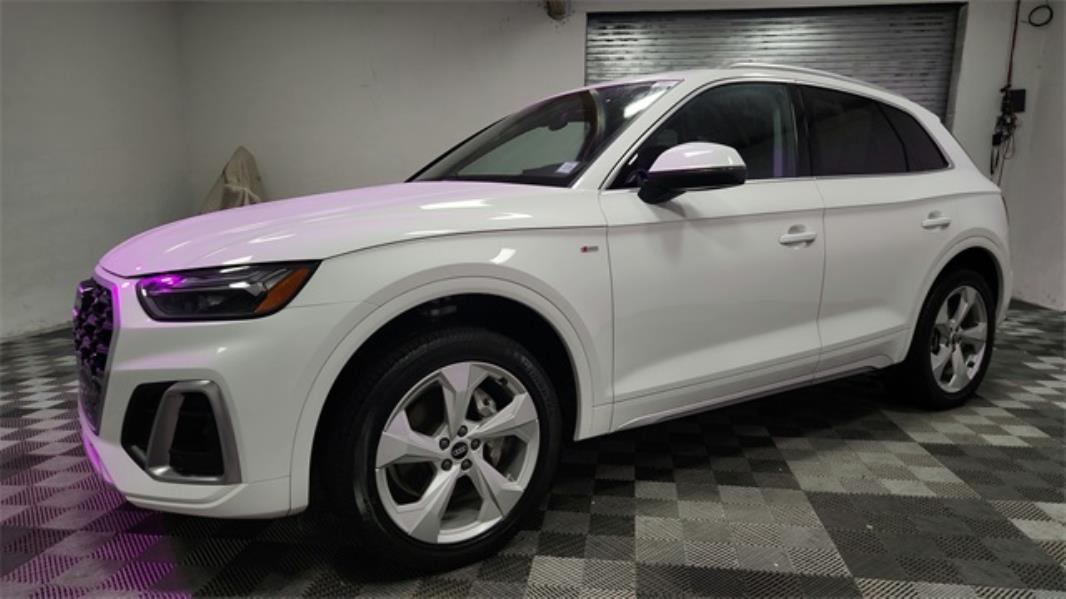 CARFAX One-Owner. 2023 Audi Q5 45 S line Premium quattro Black w/Leather Seating Surfaces, Audi Active Lane Assist, Audi Advanced Key, Audi Connect PLUS, Audi Virtual Cockpit Plus, Auto-Dimming Power Folding Exterior Mirrors, Automatic temperature control, Bang & Olufsen Sound System w/3D Sound, Convenience Package, Driver Seat Memory, Exterior Parking Camera Rear, Front dual zone A/C, Front fog lights, Hands-On Detection Steering Wheel, Heated Steering Wheel, Leatherette Covered Center Console & Door Armrests, MMI Navigation Plus, Navigation Package, Panoramic Sunroof, Power Adjustable Steering Column, Power Liftgate, Premium Plus Package, Rear air conditioning, Rear fog lights, Remote keyless entry, SiriusXM w/360L, Steering wheel mounted audio controls, Top View Camera System, Traffic Jam Assist, Wheels: 19" 5-Double-Arm Design Bi-Color Finish.2.0L Turbocharged 7-Speed Automatic S tronic quattro22/29 City/Highway MPG