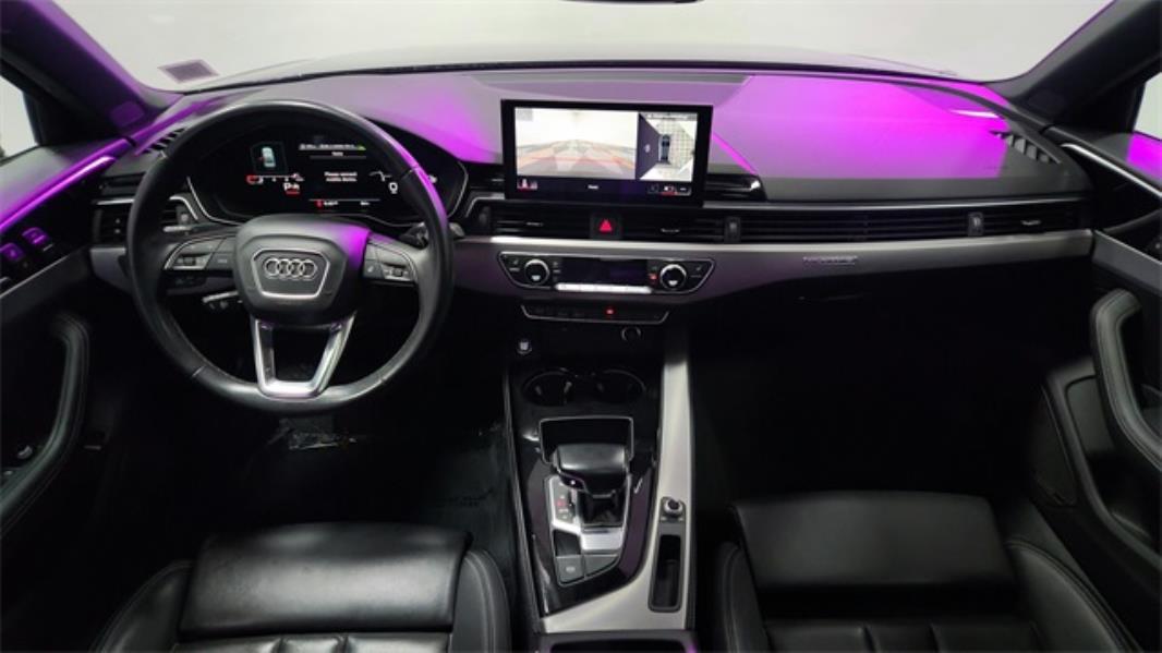 CARFAX One-Owner. 2023 Audi A4 45 S line Premium Plus quattro 7-Speed Automatic S tronic, quattro, Black w/Leather Seating Surfaces, 2 Rear USB Charge Ports, Adaptive Cruise Control, Alarm System w/Motion Sensor, Aluminum Ellipse Dark Inlays, Audi Active Lane Assist, Audi Advanced Key, Audi Connect PLUS, Audi Phone Box, Audi Side Assist w/Pre Sense Rear, Audi Virtual Cockpit Plus, Auto High-beam Headlights, Auto-Dimming Exterior Mirrors w/Memory, Automatic temperature control, Bang & Olufsen Sound System w/3D Sound, Black Audi Rings & Model Badge, Black Exterior Trim & Mirror Housings, Black Optic Package, Black Side Sill Blades & Rear Lip Spoiler, Convenience Package, Dark Chrome Exhaust Tips, Exterior Parking Camera Rear, Front dual zone A/C, Front fog lights, Hands-On Detection Steering Wheel, Heated Steering Wheel, Leatherette Covered Center Console & Door Armrests, Memory for Driver's Seat, MMI Navigation Plus, Navigation Package, Parking System Plus, Power Folding Exterior Mirrors, Power moonroof, Premium Plus Package, Rear air conditioning, Red Brake Calipers, Remote keyless entry, SiriusXM w/360L, Steering wheel mounted audio controls, Top View Camera System, Traffic Jam Assist, Wheels: 18" 5-Arm Trapezoid Design Titanium Finish.2.0L TFSI 7-Speed Automatic S tronic quattro24/32 City/Highway MPG